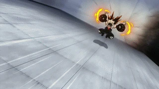 Bakugou's first instance of using Blast Shot Turbo to fly rather than simply move along the ground